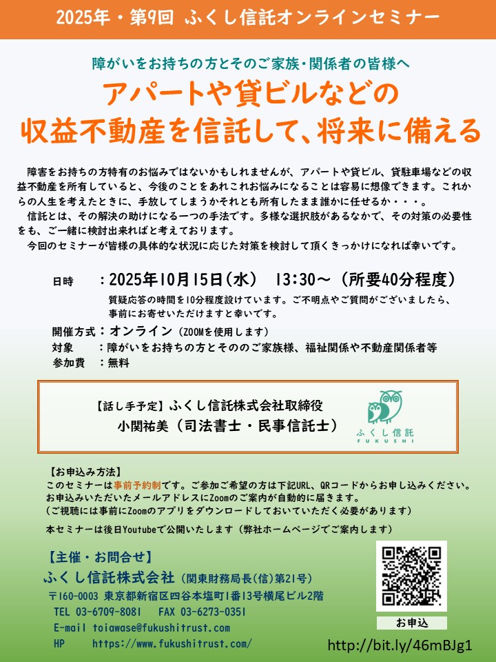ふくし信託のオンラインセミナー、2025年第9回目 開催のお知らせです。